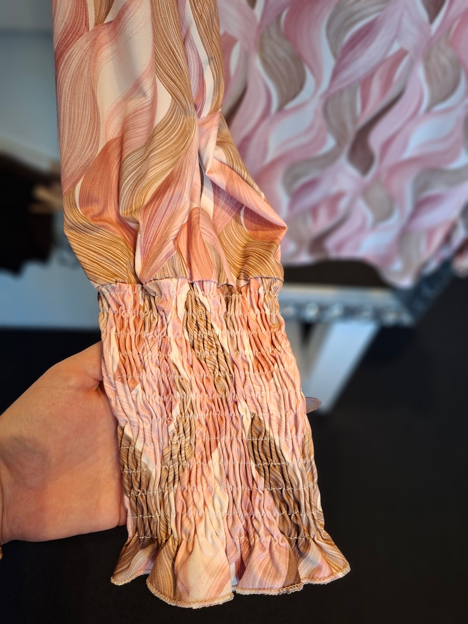 V hals top met patroon roze 1624