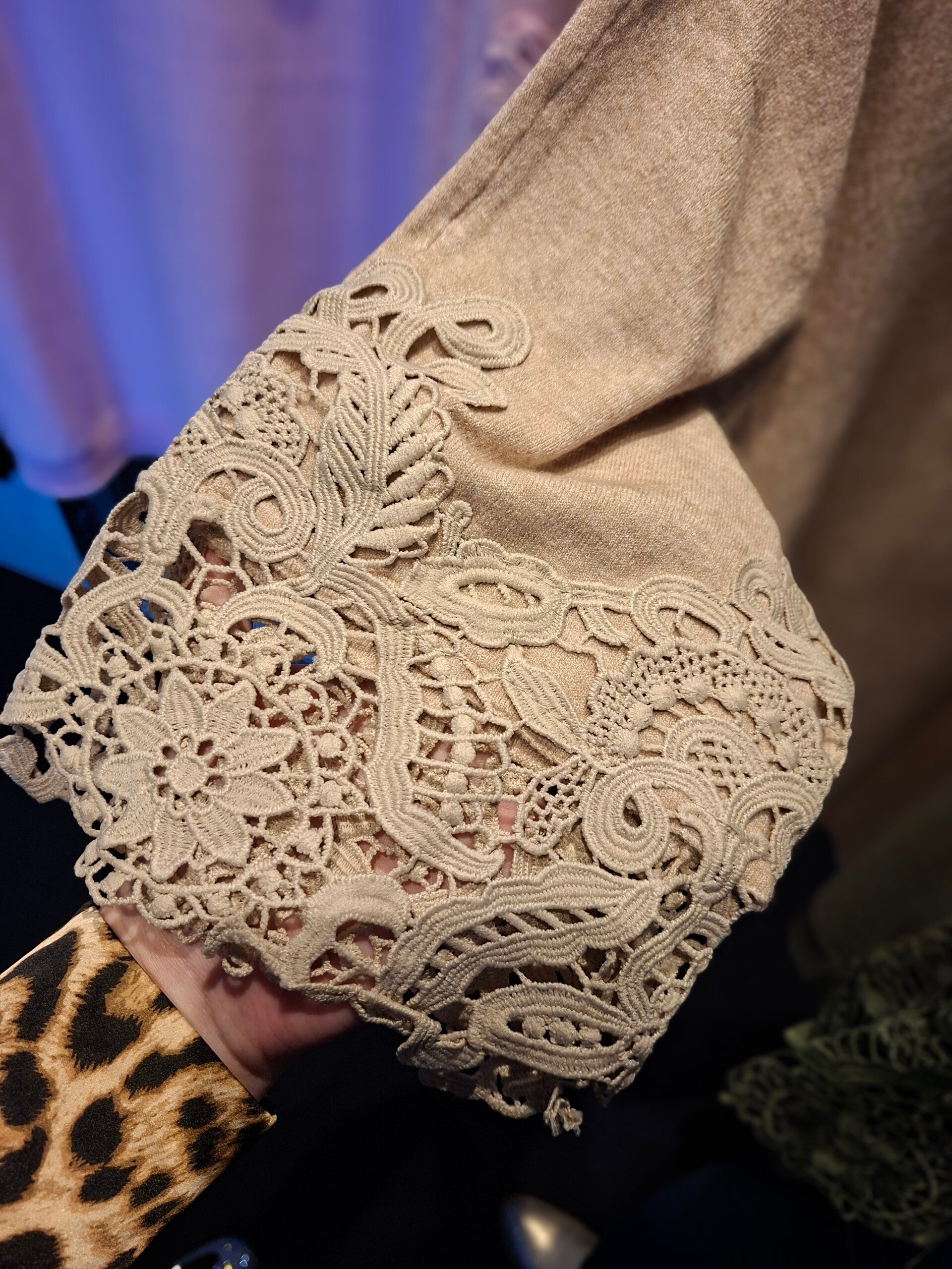 Langs de rand van de mouw zit een heel mooi bewerkt stukje.